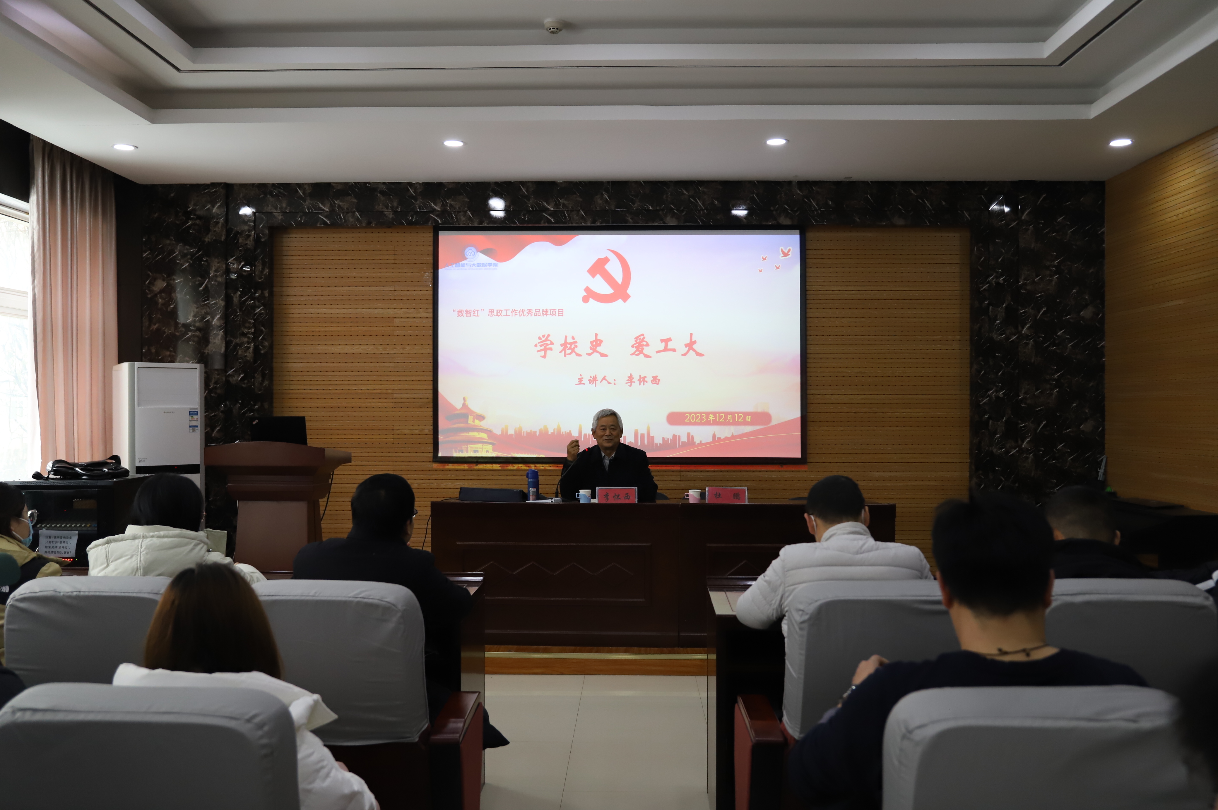 在6228会议室开展“学校史,爱工大”主题讲座。讲座由我校退休干部、管理学院党委原书记李怀西主讲,教师代表及学生参加此次讲座,讲座由学院党委书记杜鹏主持。