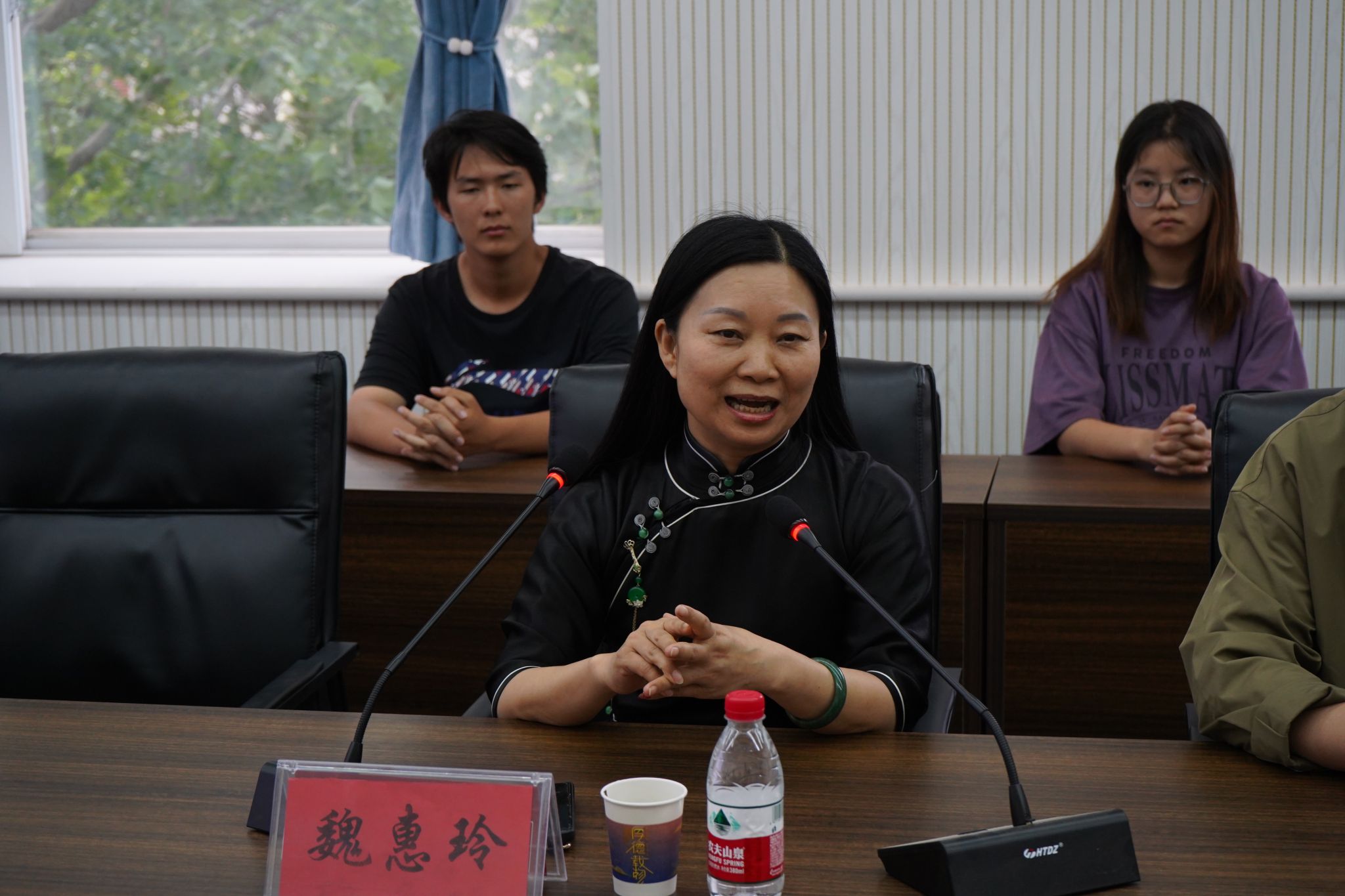 魏惠玲以她对诗歌的独特热爱为起点,深情地讲述了通过家庭和学习深刻地塑造世界观和人生观的方法。她希望通过自己的经历,能够激发学生们对阅读的热爱,并鼓励学生多读书、读好书。她说:在人工智能时代,读书不仅没有过时,反而成为我们抵御浮躁、保持思考深度、塑造独立人格、应对未来不确定性的关键路径。交流中魏惠玲老师还从新闻报道的角度,对学院宣传和文化品牌建设等方面提出了指导建议。