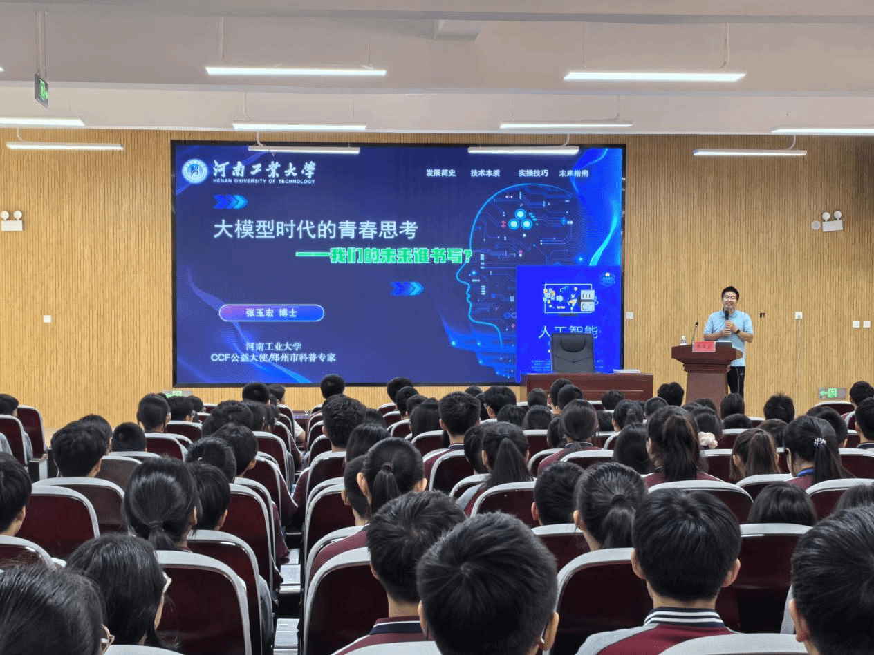 副教授张玉宏应邀参加启动仪式,并以《大模型时代的青春思考》为题向与会800余名师生作了专题科普讲座。