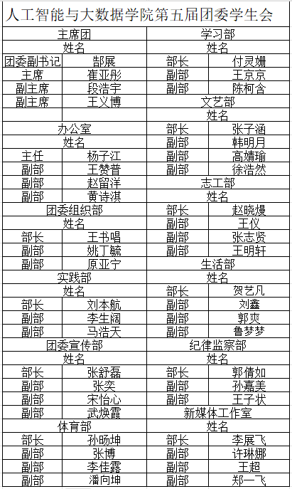 快猫短视频 第四届学生会干部届期已满,为保证团学工作正常开展,经过公开报名、资格审查、公开答辩、综合考察等程序,选拔出了郜展、崔亚彤等44名骨干,现将快猫短视频 第五届学生会主席团和各部门拟任骨干名单予以公示。