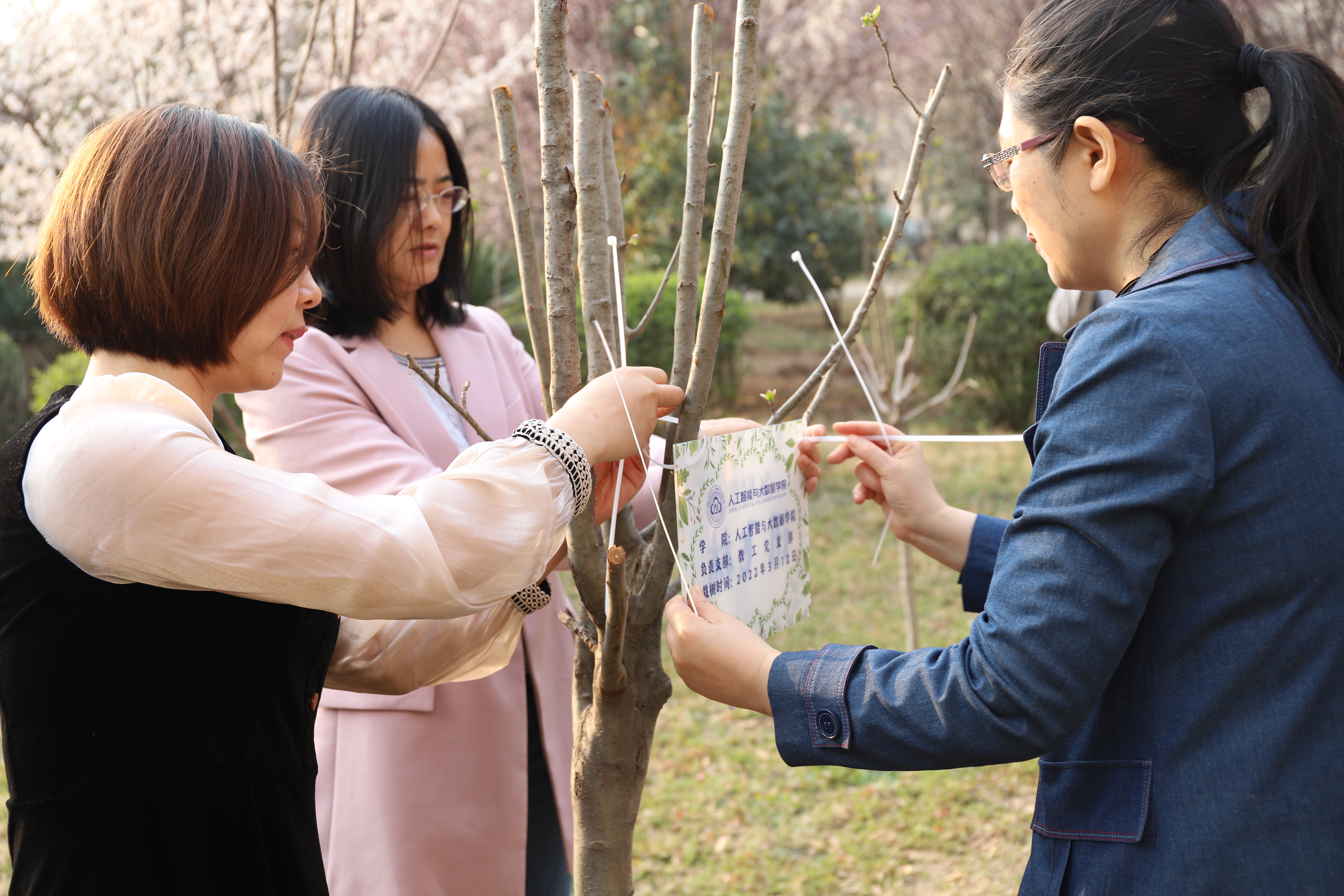 为纪念这次别开生面的主题党日活动,师生党员们还制作了支部认养标志牌,安装悬挂在每颗新栽植的树干上,对“党员责任区”内划定的新栽树木,实行党支部集中认领和党员个人认领,并通过主题党日、党员志愿服务、文明创建等活动,根据季节气候特点、树木生长规律定期开展培管养护。