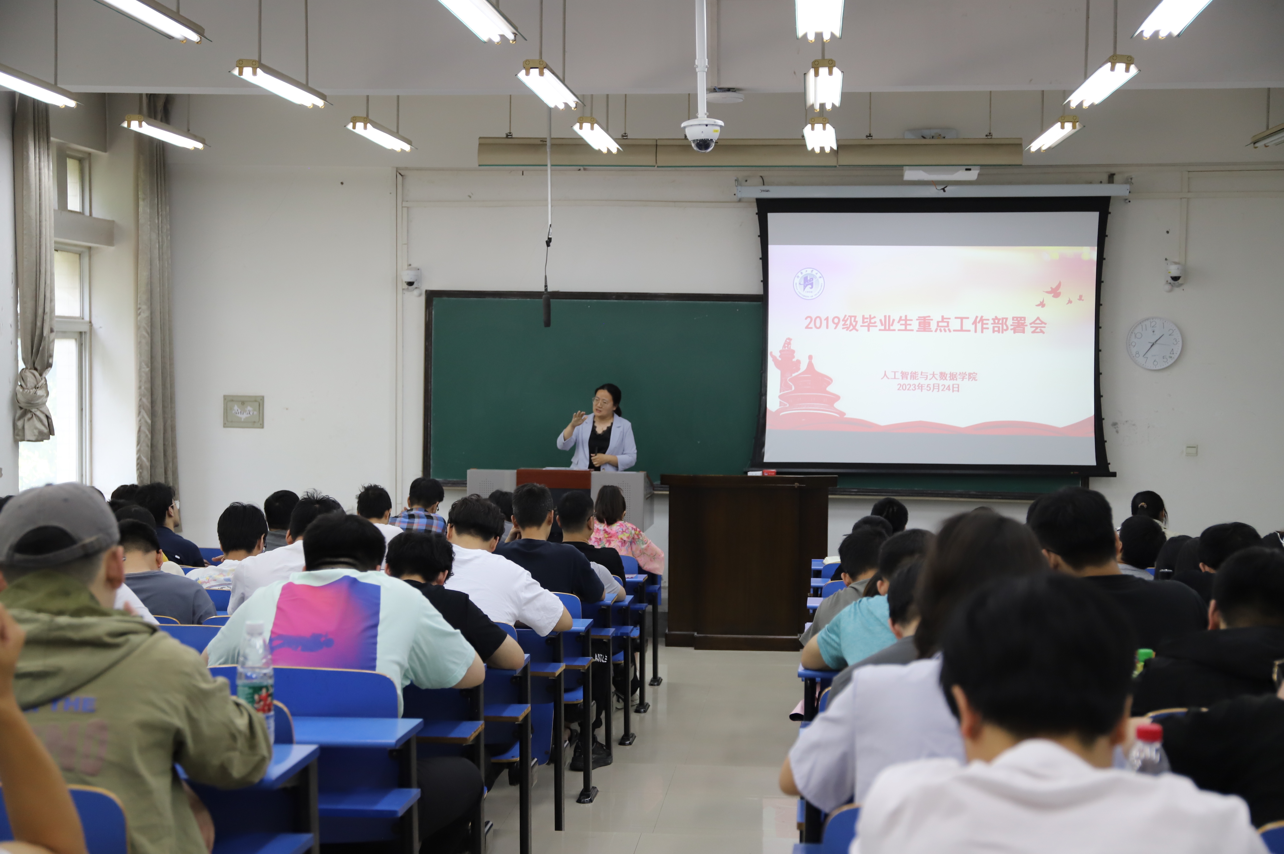 于4206教室召开2019级毕业生重点工作部署会。学院党委副书记薛运侠、全体辅导员老师以及2019级全体毕业生参加会议。会议由学工办副主任陈鸣凘老师主持。