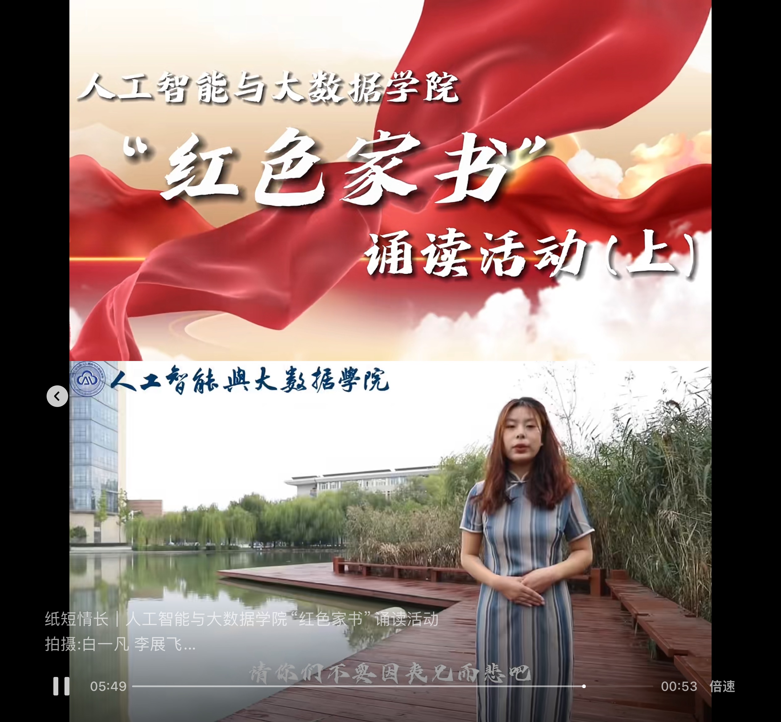 新媒体中心在辅导员老师的指导下,将优秀汇报作品制作成《纸短情长——“数智红”红色家书诵读活动》新媒体作品,并在学院视频号发布,一封封红色家书记录着革命烈士对亲人的深深留恋,也蕴含着他们对革命事业的坚守、对理想信念的坚定。