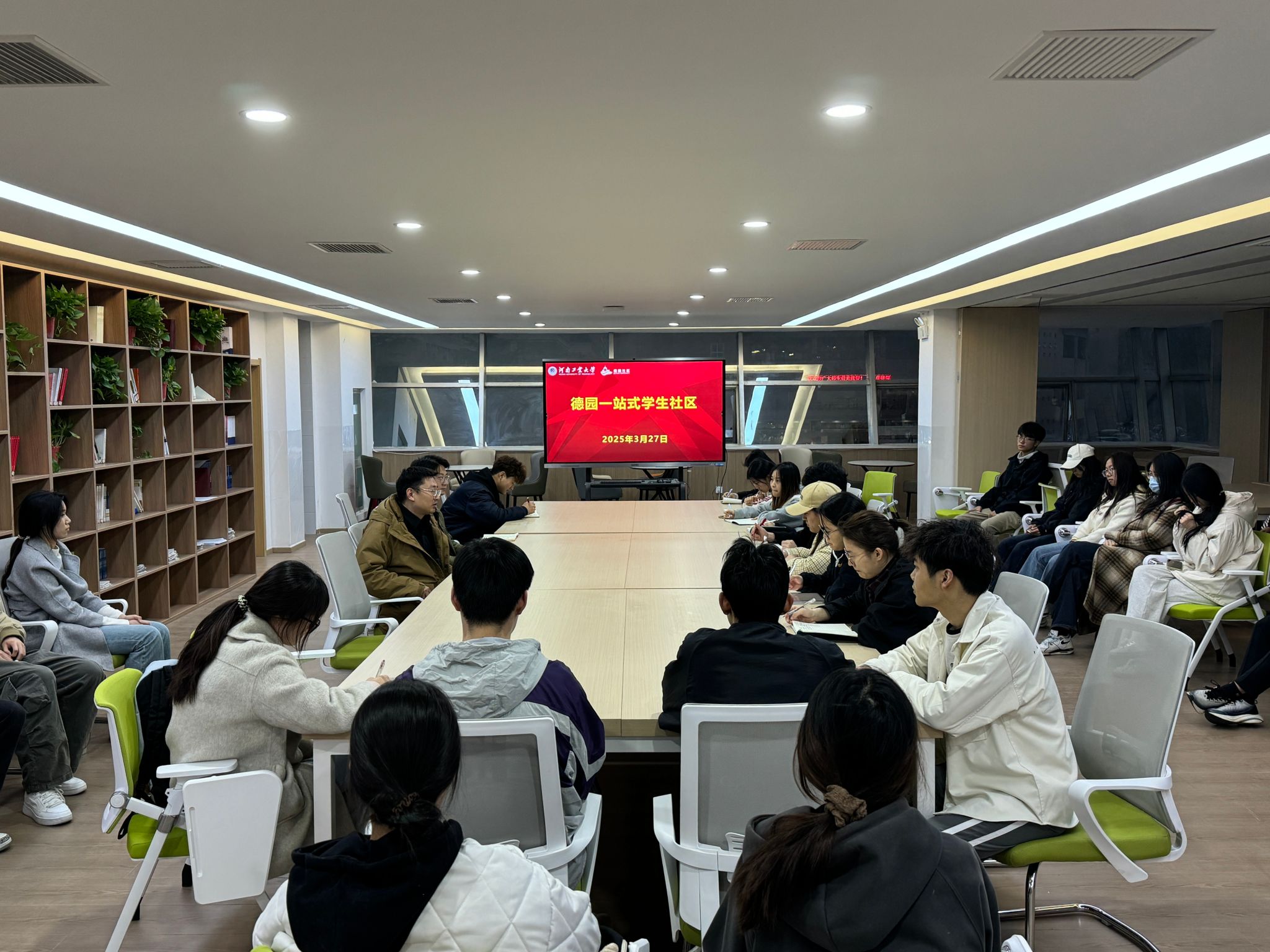 在德园“一站式”学生社区召开学生工作例会。学院辅导员、学生会全体成员参加会议。会议由院党委副书记赵志洋主持。