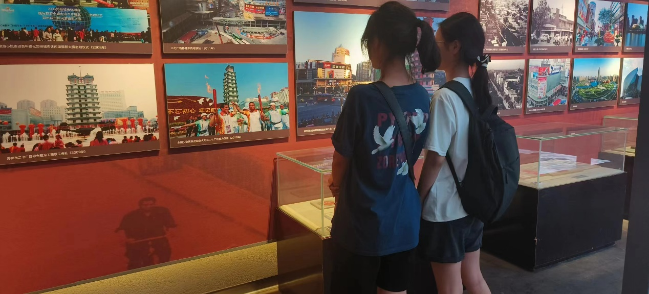 7月19日,团队成员们怀着激动的心情踏入二七纪念塔,在讲解员的带领下对二七塔的历史和每一展厅进行了解、参观。从二七运动的背景及经过到对二七英烈的纪念,再到对二七精神的传承和弘扬,纪念塔通过各种呈现形式向同学们充分展现了不朽的“二七精神”。团队成员认真聆听讲解,仔细阅读文字资料,观看柜内文物,探讨柜外陈设的油画及模型,全面深入学习二七大罢工历史,感悟中国工人阶级大无畏的革命精神。同学们在工人群组雕像和革命文物展览柜前驻足观看,回想革命先烈们在艰苦卓绝条件下的英勇斗争,被“不屈不挠、无私无畏”的”二七”革命精神深深地感染着、激励着。