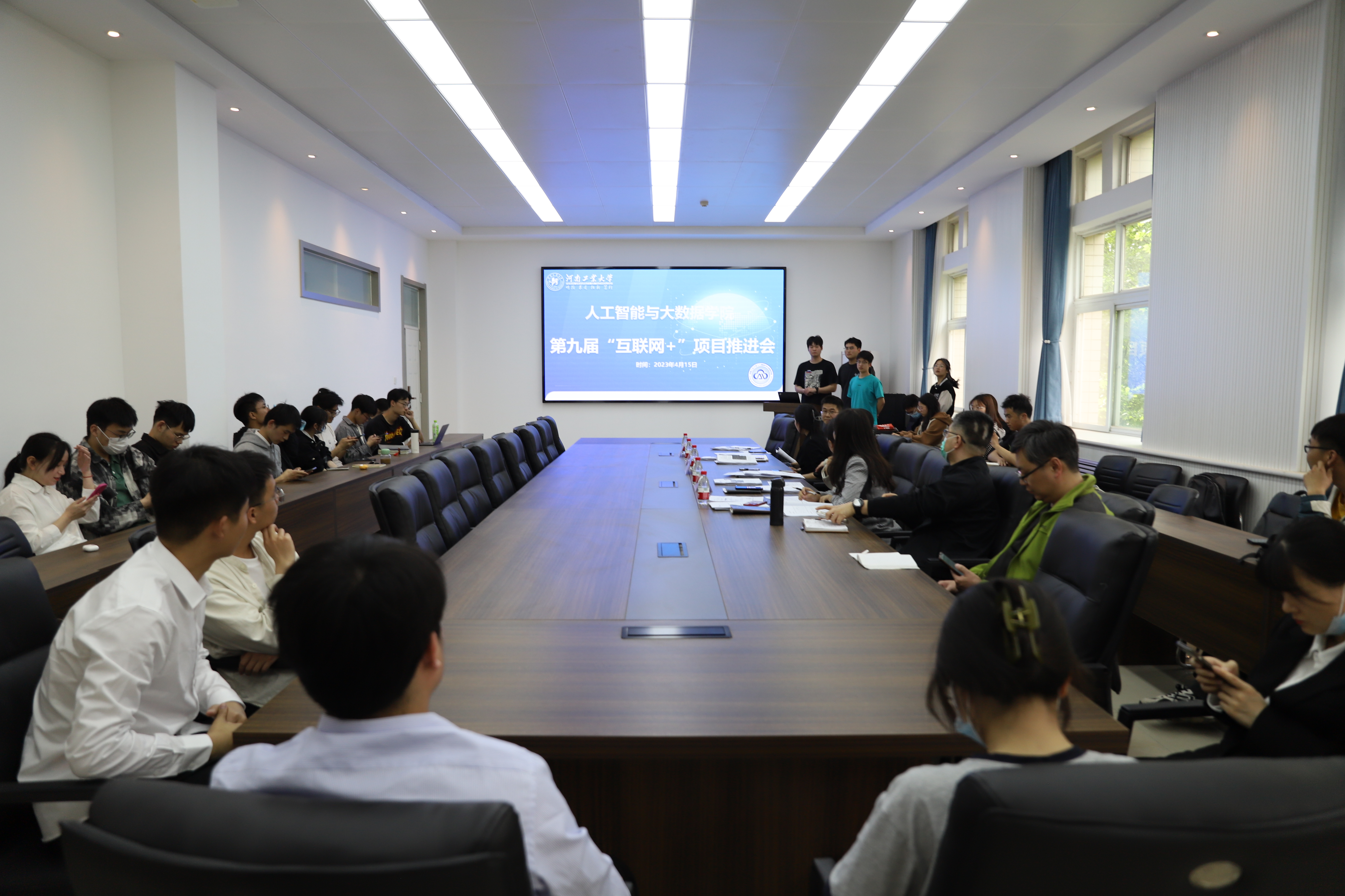 在6369会议室召开“互联网+”大学生创新创业大赛项目推进会。“中国青年创业导师”王伟、学院优秀教师张玉宏、科大讯飞创新创业指导老师陈月月受邀担任评委,学院党委副书记薛运侠、学工办主任陈鸣凘及参赛团队指导老师和成员参加本次推进会。