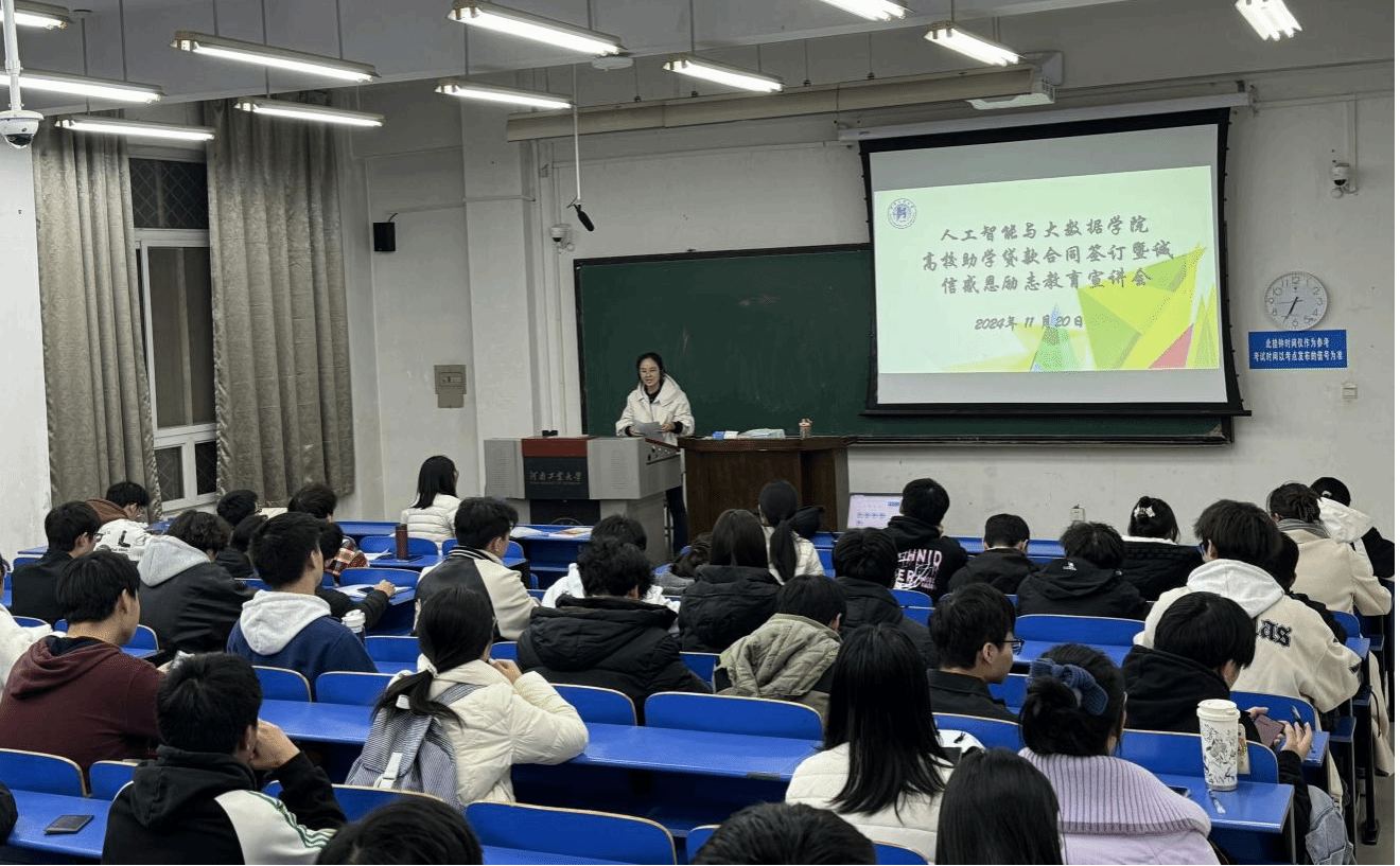 在4112室,召开了2024年高校国家助学贷款合同签订暨诚信感恩教育宣讲会。会议由学院老师齐卫红组织,学院申请高校国家助学贷款的学生、快猫短视频