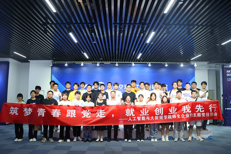 学生赴郑州空港人工智能研究院开展“筑梦青春跟党走,就业创业我先行”主题党日活动。支部书记唐金杰、科大讯飞导师陈月月、张晓东以及学生党员代表参加本次活动。
