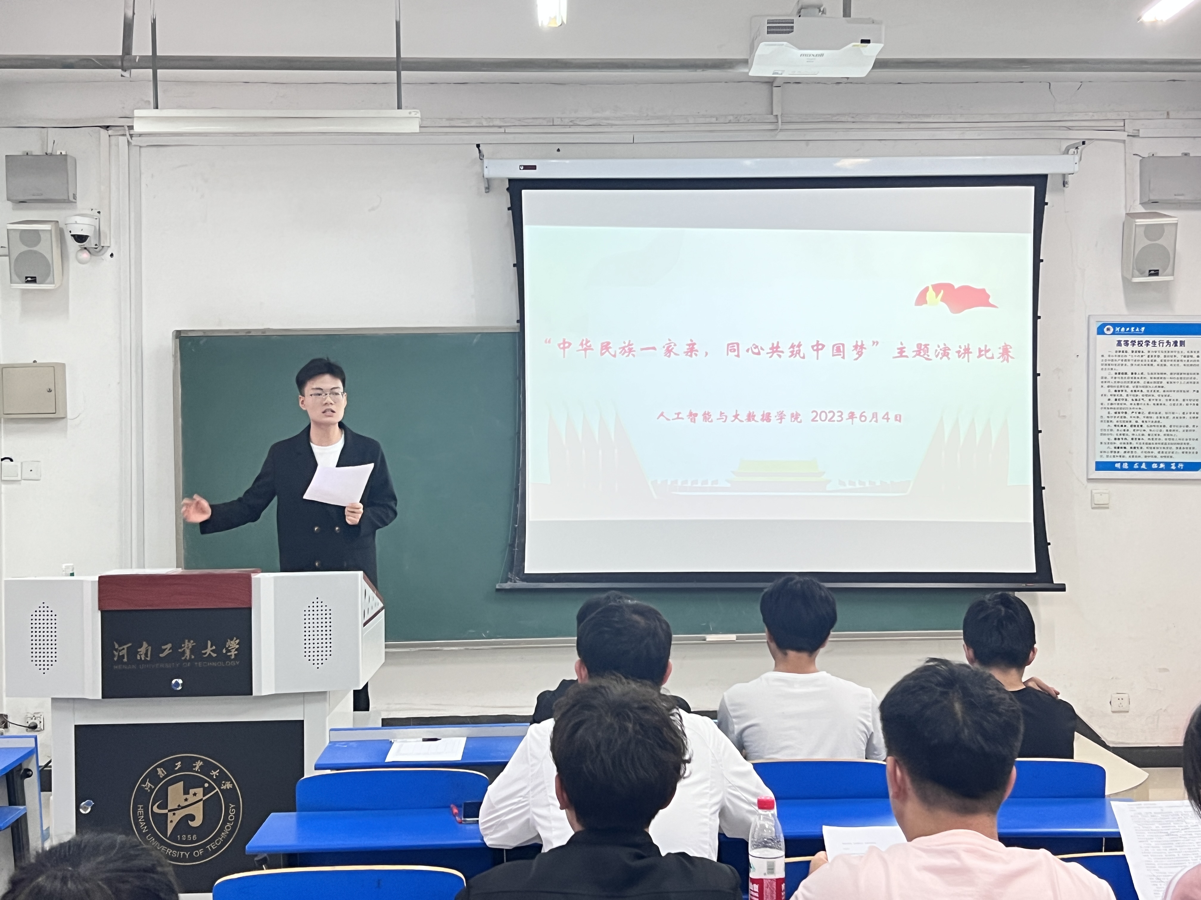 学院开展“中华民族一家亲,同心共筑中国梦”系列活动。比赛前夕,学院各个班级分别举行班内选拔,每班评选出一名代表参加院级比赛。6月5日,学院在3105举办“中华民族一家亲 同心共筑中国梦”主题演讲比赛,学院团委副书记郑帅以及学生会干部担任本次比赛评委。