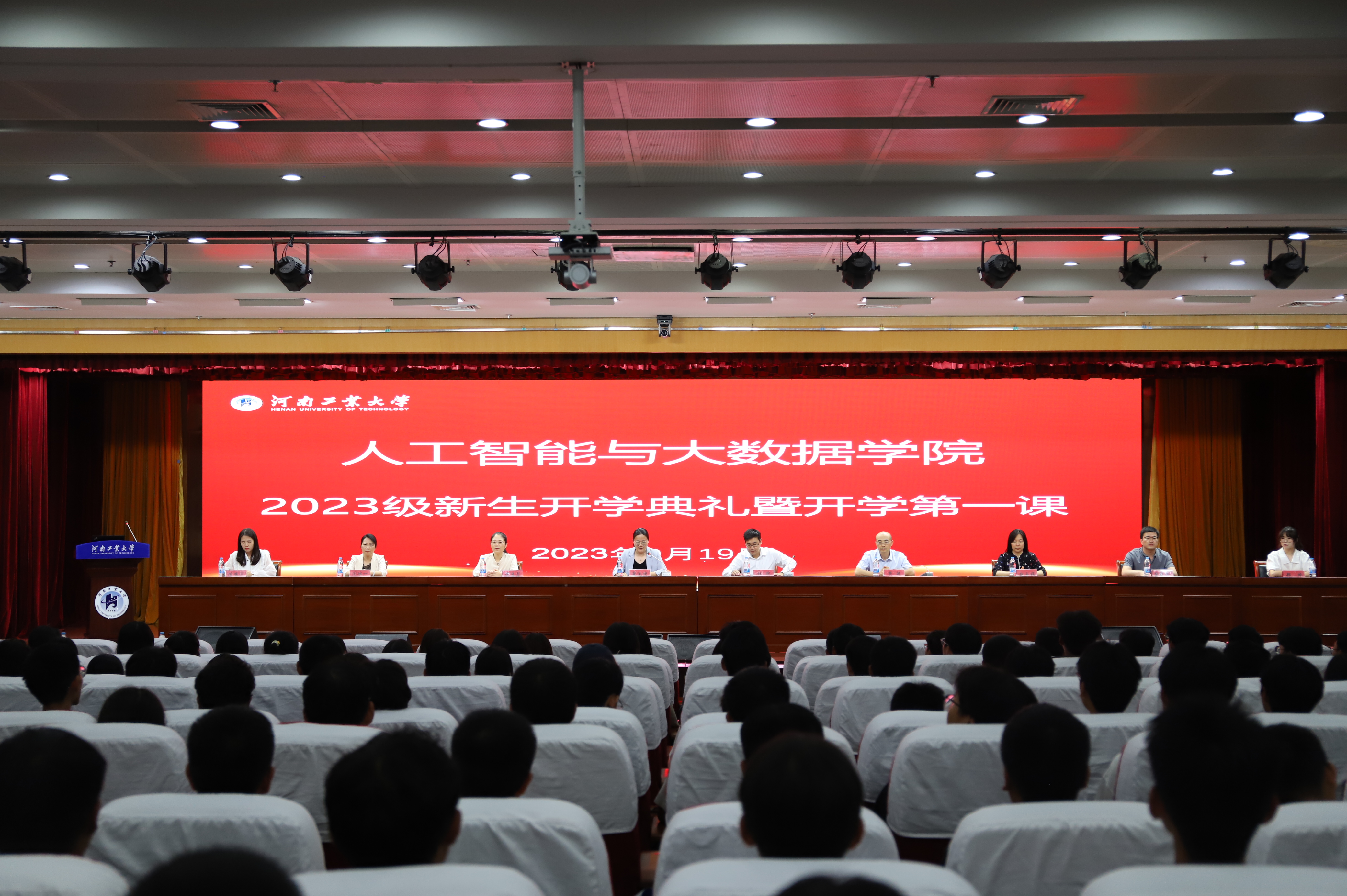 在学术报告中心D303报告厅隆重举行2023级本科新生开学典礼。学院党委书记杜鹏、院长樊超、副书记薛运侠、副院长赵玉娟、各专业系主任、教学办学工办团委负责人、全体辅导员及新生班主任出席典礼。典礼由学院党委副书记薛运侠主持。