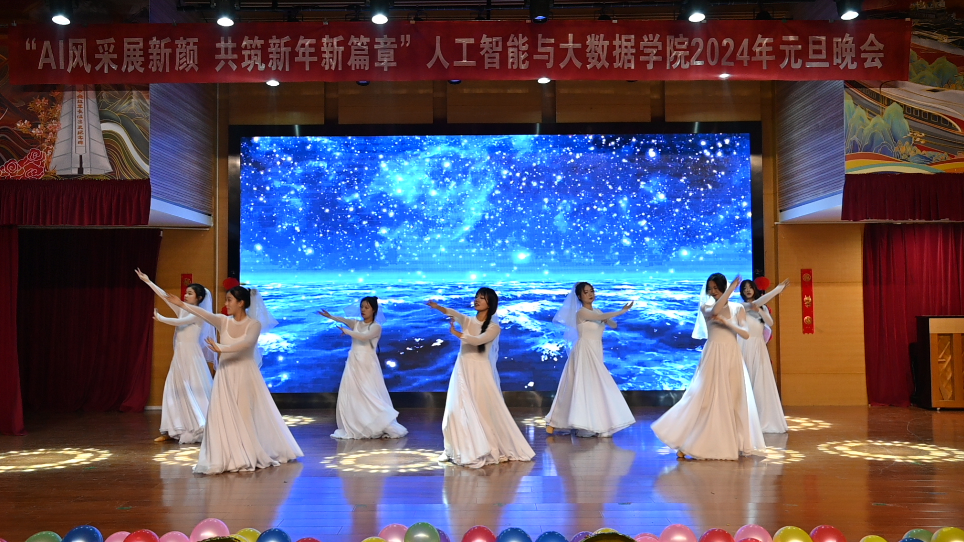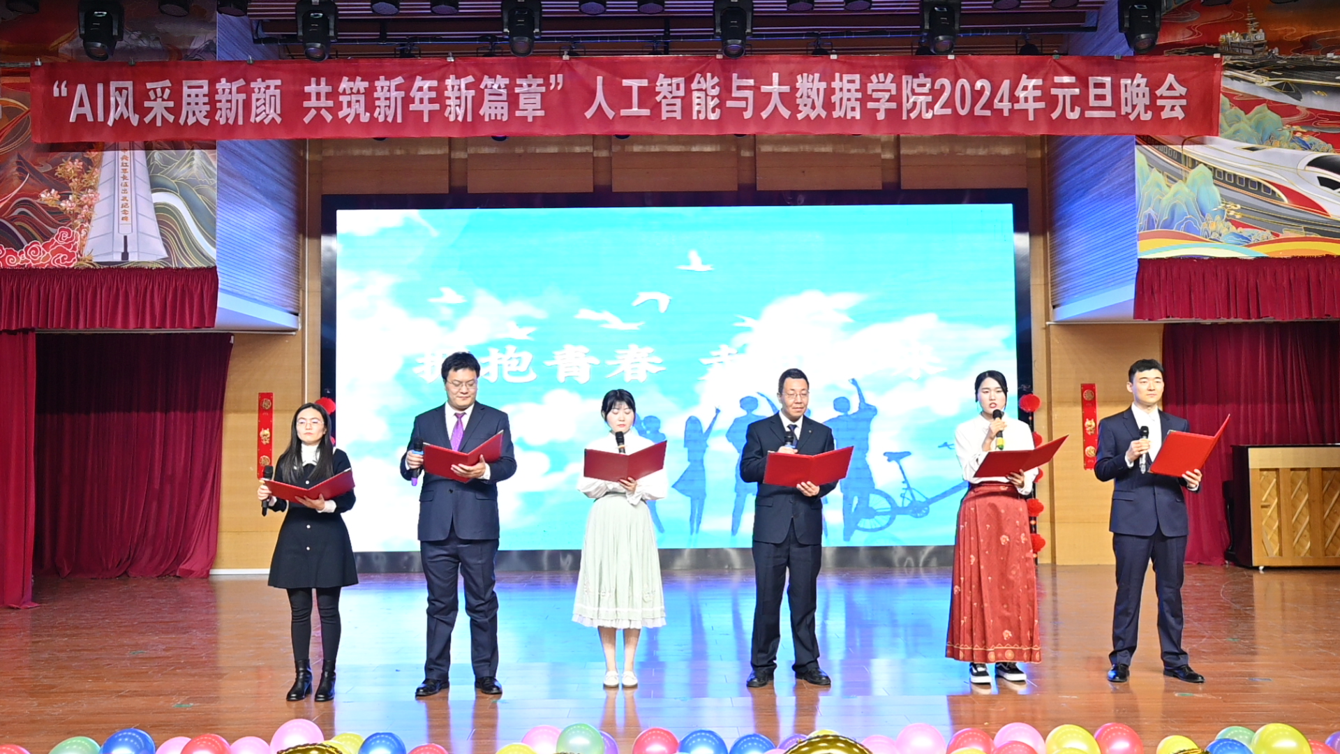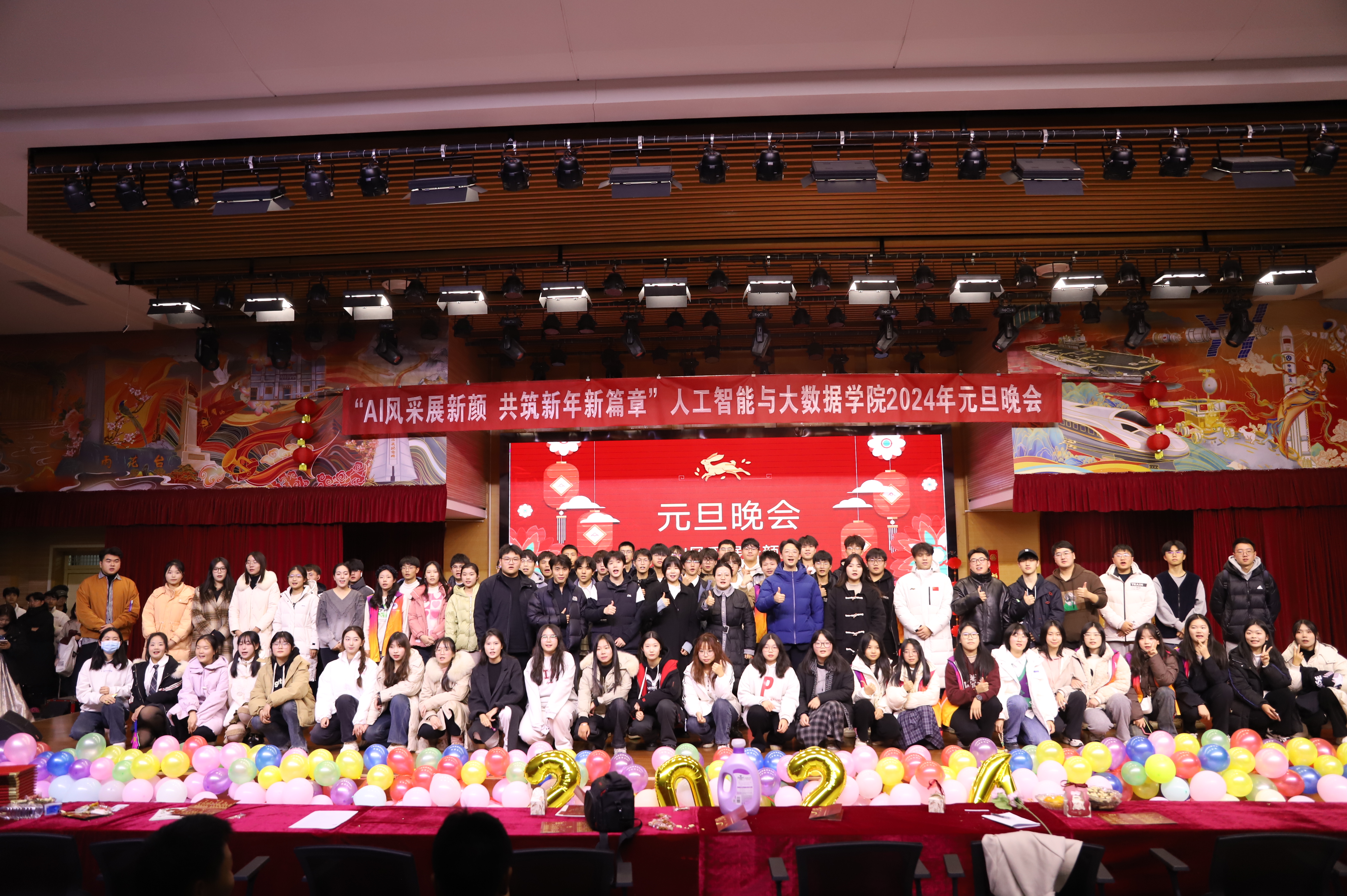 举办了 “AI风采展新颜,共筑新年新篇章” 2024年师生新年联欢会。校党委学生工作部副部长薛中海、校团委副书记吴鹏、学院党委副书记薛运侠、校党委学生工作部综合科科长李振宇以及学院师生代表和兄弟学院学生骨干近400余人观看了本次新年联欢晚会。