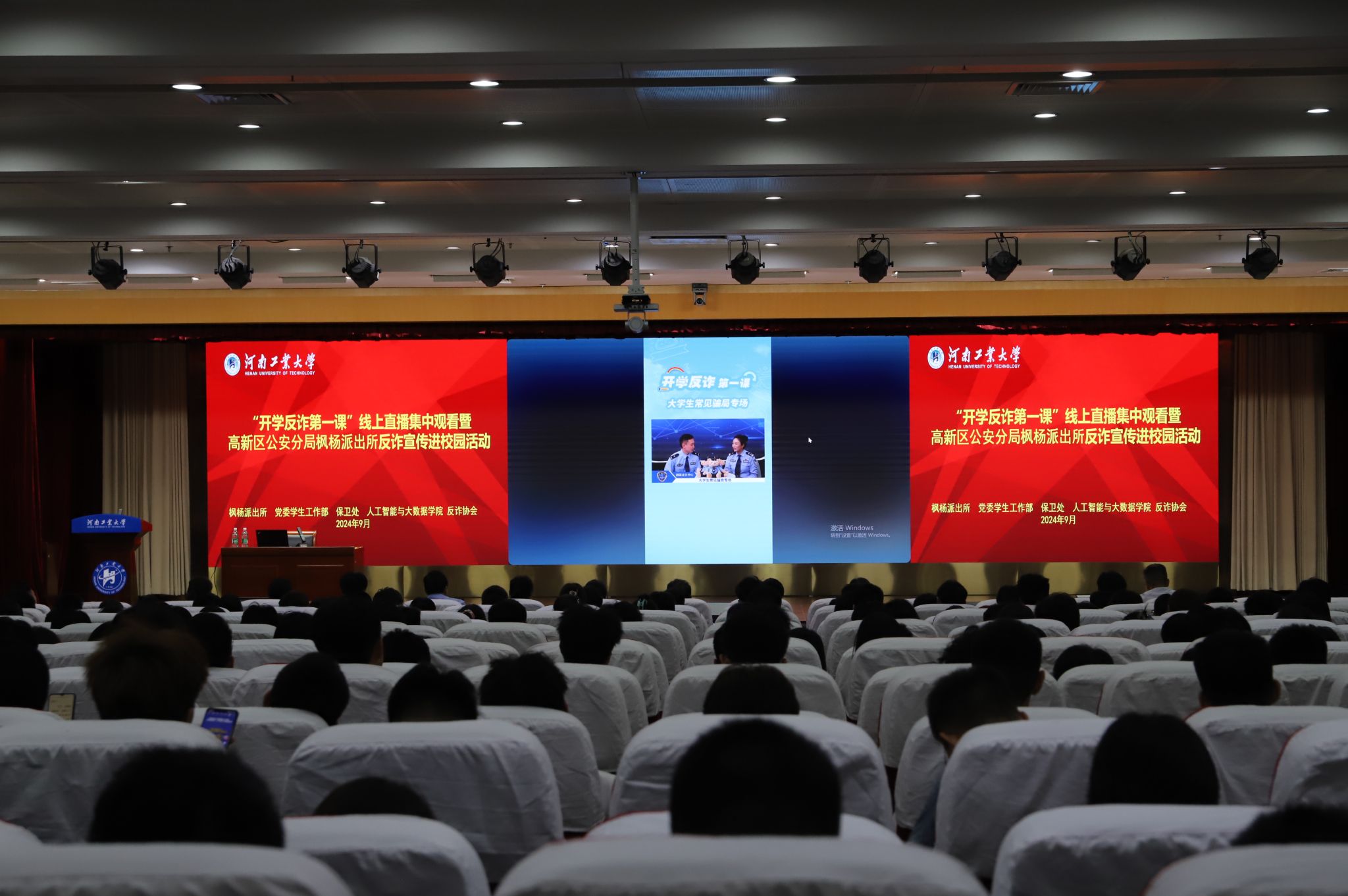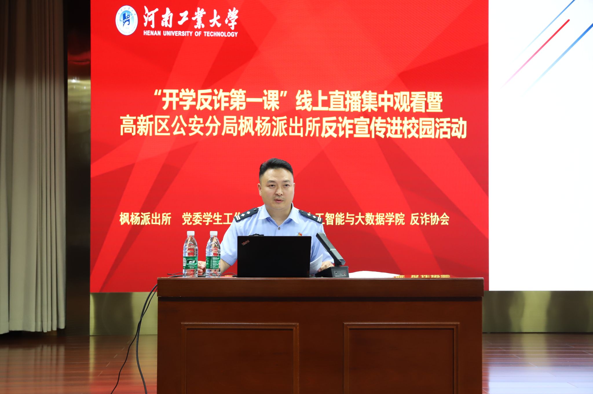 等联合高新区公安分局枫杨派出所和反诈协会举办了“开学反诈第一课”线上集中观看暨反诈宣传进校园活动。高新区公安分局枫杨派出所所长郎龙飞,我校保卫处副处长李磊,快猫短视频