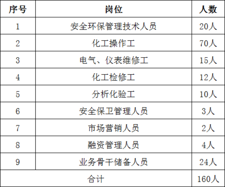 为满足公司项目建设及试生产的需求,现面向社会公开招聘160名工作人员,具体招聘事宜如下: